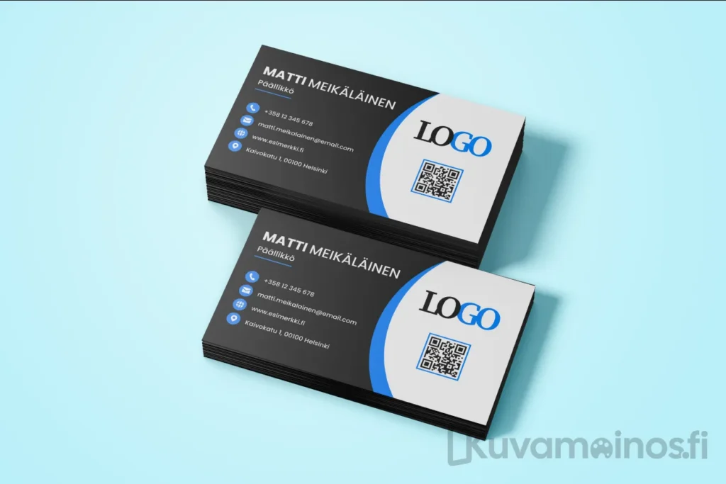 • Painoinfo: nimi, titteli, yrityksen nimi, logo, puhelin, sähköposti ja mahdolliset muut tiedot