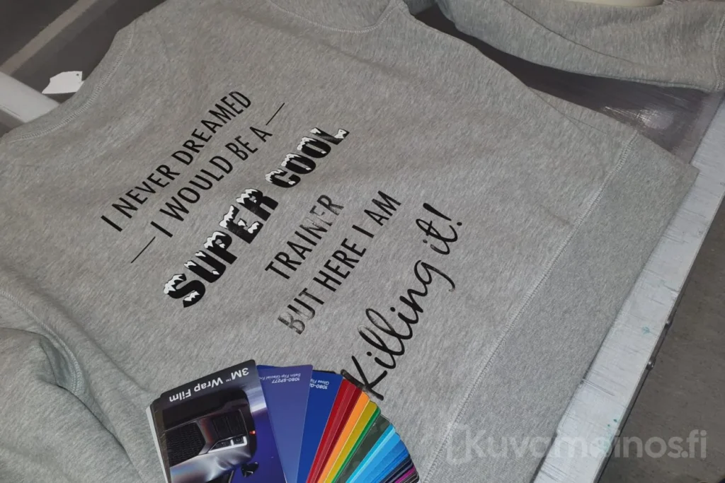 Kuumapainatus tarjoaa hyvän pesunkeston, kun tuote hoidetaan oikein. Värit eivät leviä, ja materiaali kestää normaalin kotikäytön. Moniväriset kuvat ja pienet yksityiskohdat ovat mahdollisia tulostettavilla kalvoilla.